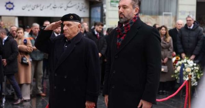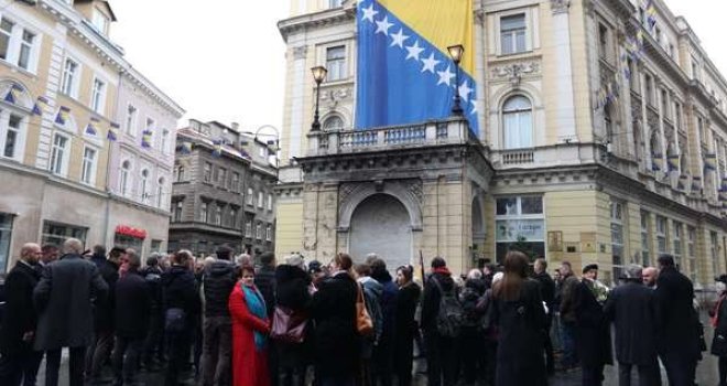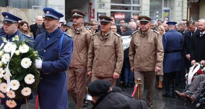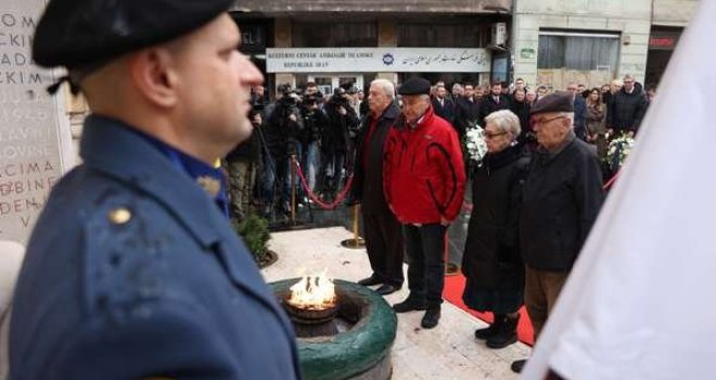 Prije polaganja cvijeća ispred spomenika kod Vječne vatre, na brdu Hum iznad Sarajeva podignuta je zastava BiH i intonirana državna himna.