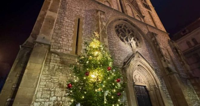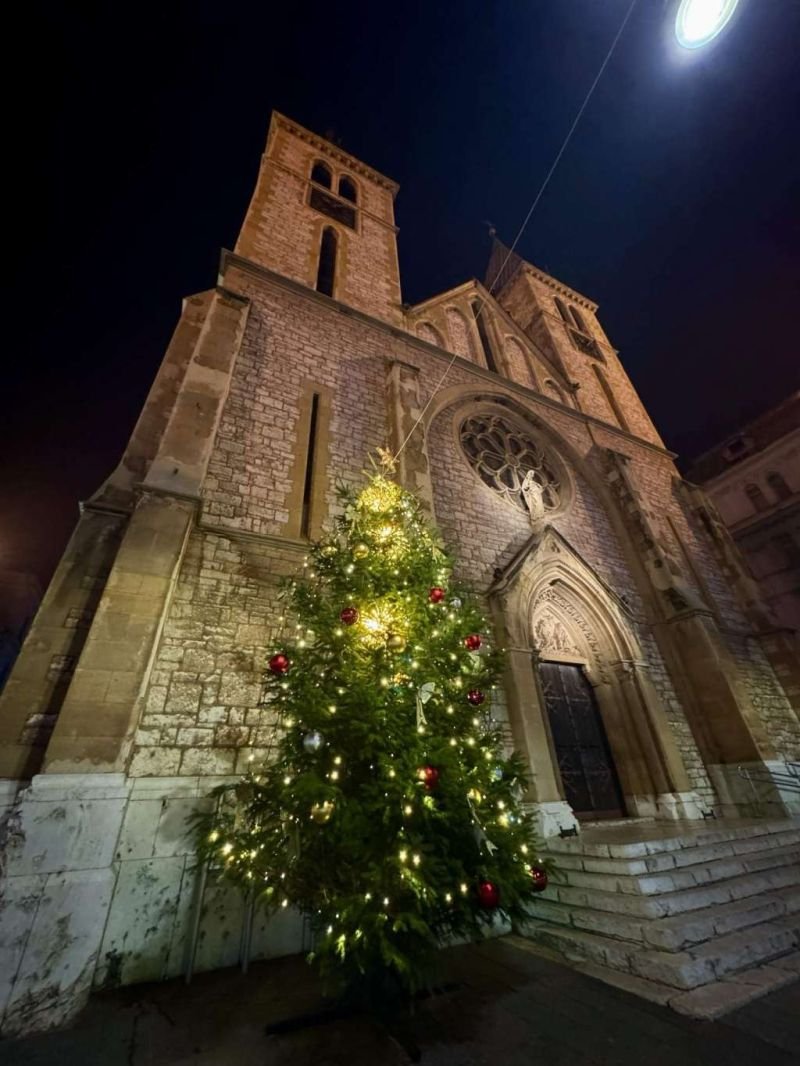 Ispred Katedrale Srca Isusova zasjalo je i okićeno božićno drvo, najavljujući radost nadolazećeg Božića.