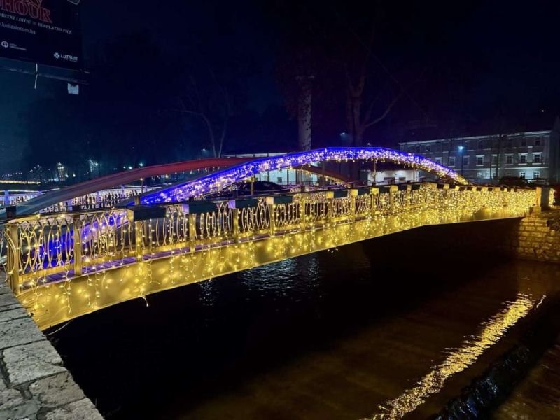 Sarajevski mostovi: Šeher-ćehajina ćuprija, Novi most kod Vijećnice, Latinska ćuprija, Drvenija, Ćumurija, Čobanija, Festina lente i Eiffelov most, zablistali su u raskošnom prazničnom ruhu.