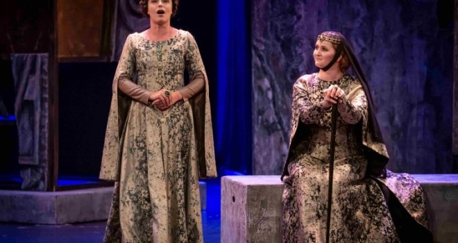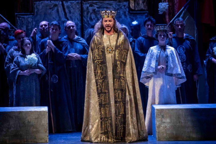 Naslovnu ulogu Tvrtka iznio je solista Opere NPS Ivan Šarić; Grubaču, Tvrtkovu nevjenčanu suprugu utjelovila je Amila Ravkić; u ulozi kneginje Jelene, Tvrtkove majke slušali smo Katarinu Kikić Marić; dok je Doroteju, kraljicu bosansku utjelovila Hana Salihović. Amir Saračević igrao je ulogu Vuka Tvrtkovog brata; Ileš Bečei lik Vuka Dabišića, plemića, zavjerenika protiv Tvrtka. Solista Opere Erol Ramadanović iznio je lik Hotjana, Tvrtkovog savjetnika. Did bosanski, poglavar Crkve bosanske je Leonardo Šarić; Vlatko Hranić, bosanski vitez i velikaš Denis Isaković.
